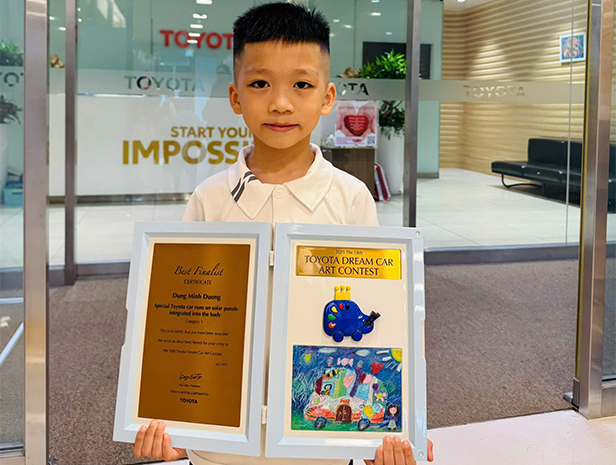 Con cảm ơn Toyota vì đã tổ chức một cuộc thi thật hay và ý nghĩa. Nhờ có cuộc thi này, con được vẽ chiếc ô tô trong mơ của mình. Con hy vọng sau này Toyota sẽ làm ra những chiếc xe như trong bức tranh của con, để ai cũng có thể đi chơi bằng những chiếc xe đó.