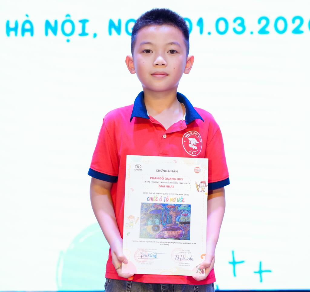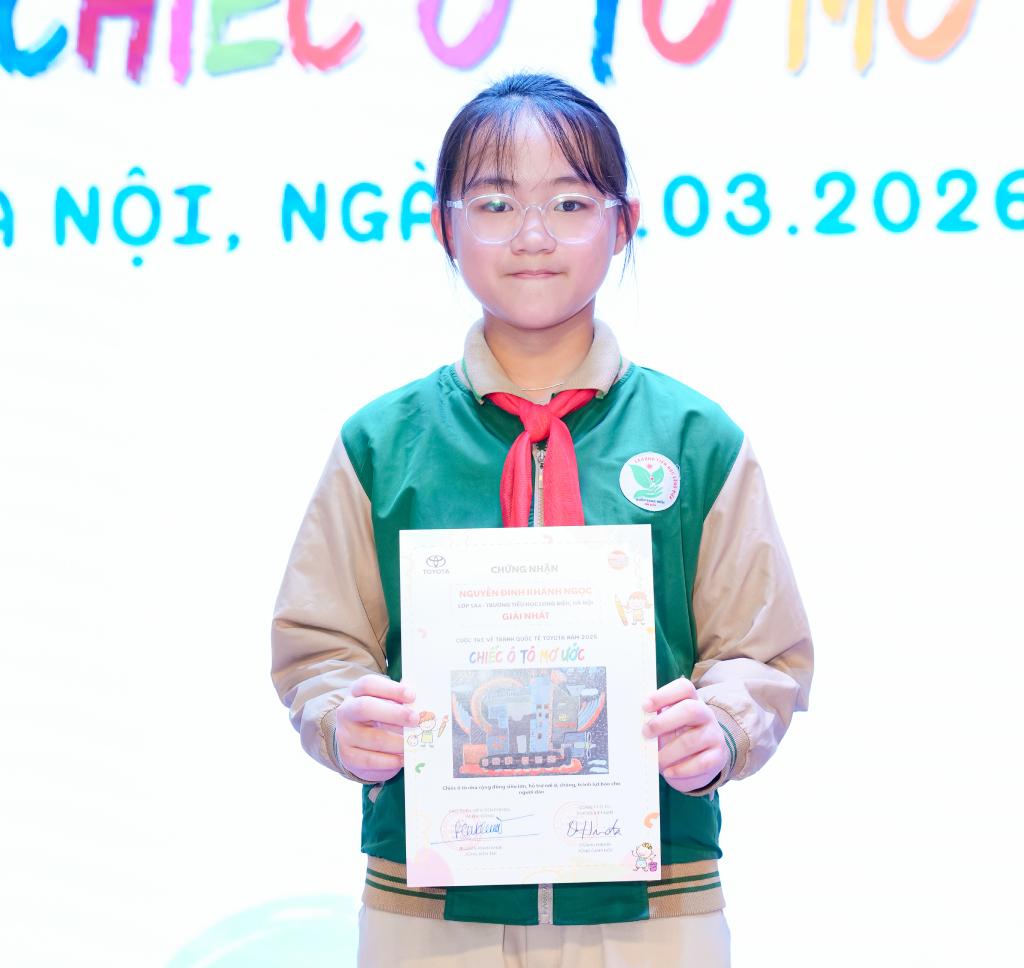Đây là lần thứ 2 con vinh dự quay lại với sân chơi này. Trước đó, con từng may mắn đạt giải tại các cuộc thi cấp Quốc gia như Sân trường mơ ước, Tương lai xanh, Sáng kiến bạo lực học đường... Với con, "Chiếc ô tô mơ ước" của Toyota luôn là sân chơi ý nghĩa nhất, nơi con không chỉ vẽ tranh mà còn được thực hiện hóa những "phát minh nhí" để hướng tới một thế giới tốt đẹp hơn.
