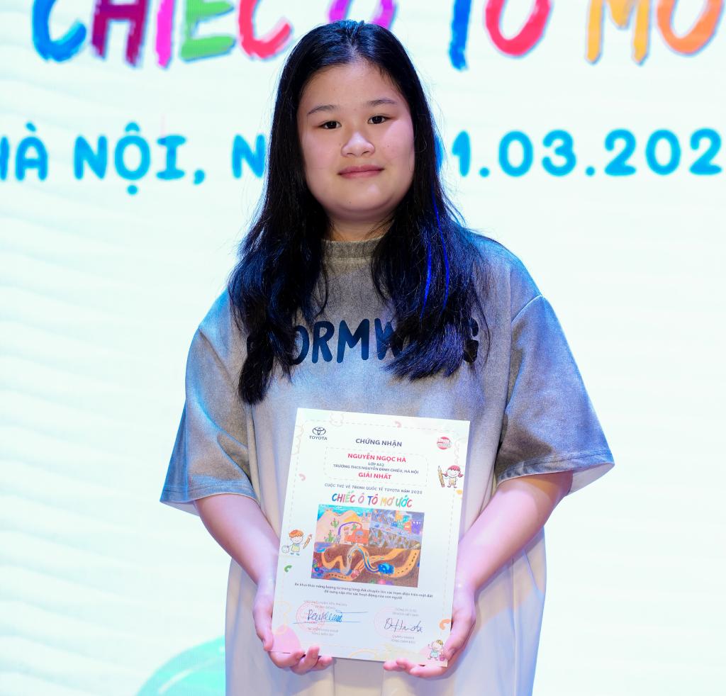 Đây là lần thứ 5 em tham gia cuộc thi "Chiếc ô tô mơ ước". Hội họa là niềm đam mê của em và em cũng từng tham gia nhiều cuộc thi khác như Hoan hô dũng sĩ Điện Biên, Sân chơi ý tưởng trẻ thơ, Sân trường mơ ước, Tương lai xanh, Du lịch cùng Mường Thanh… Em còn vinh dự được tham gia triển lãm tranh tại Pháp và đạt một số giải thưởng cấp Quốc gia. Với em, cuộc thi do Toyota tổ chức là một sân chơi ý nghĩa và chuyên nghiệp, nơi em có thể tự do sáng tạo và gửi gắm ước mơ về một thế giới tốt đẹp hơn.